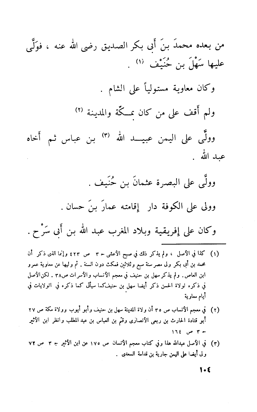 من بعده مُحَمَّد بن أبي بكر الصّديق رضى الله عَنهُ فولى عَلَيْهَا سهل بن حنيف