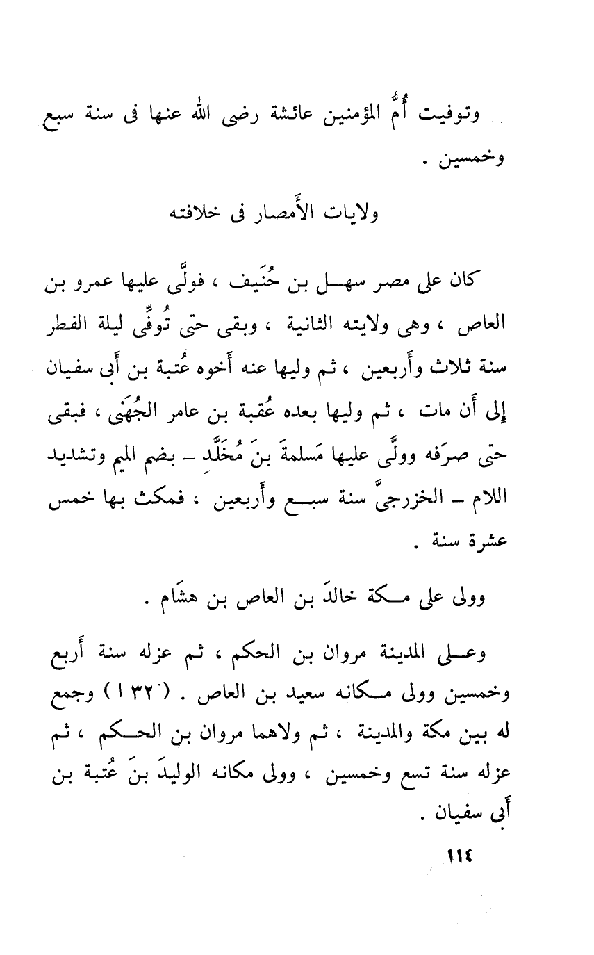 كَانَ على مصر سهل بن حنيف فولى عَلَيْهَا عَمْرو بن الْعَاصِ وهى ولَايَته الثَّانِيَة وبقى حَتَّى توفى لَيْلَة الْفطر سنة ثَلَاث وَأَرْبَعين ثمَّ وَليهَا عَنهُ أَخُوهُ عتبَة بن أبي سُفْيَان إِلَى أَن مَاتَ ثمَّ وَليهَا بعده عقبَة بن عَامر الْجُهَنِيّ فبقى حَتَّى صرفه وَولى عَلَيْهَا مسلمة بن مخلد بِضَم الْمِيم وَتَشْديد اللَّام الخزرجي سنة سبع وَأَرْبَعين فَمَكثَ بهَا خمس عشرَة سنة