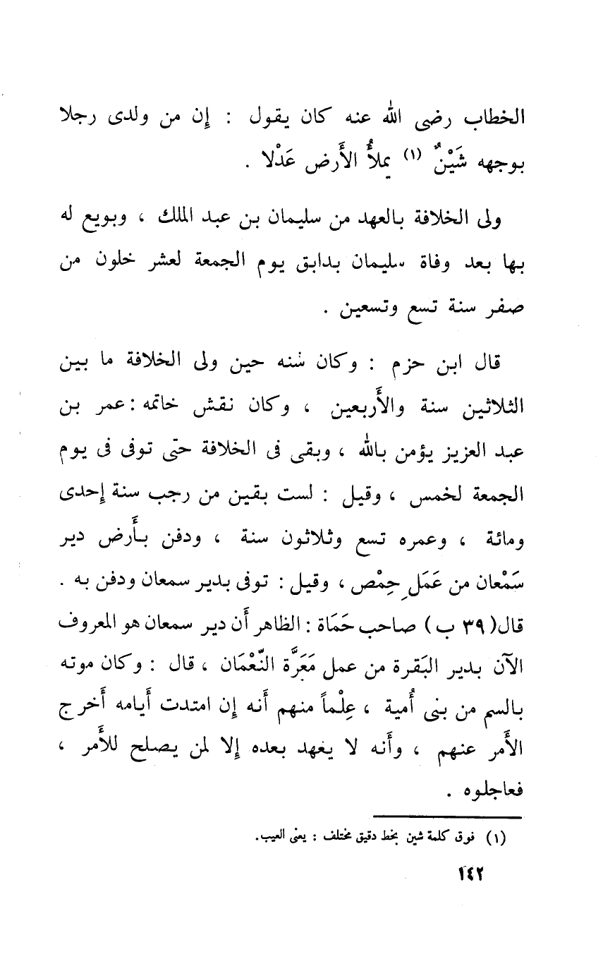 الْخطاب رَضِي الله عَنهُ كَانَ يَقُول ان من وَلَدي رجلا بِوَجْهِهِ شين يمْلَأ الارض عدلا