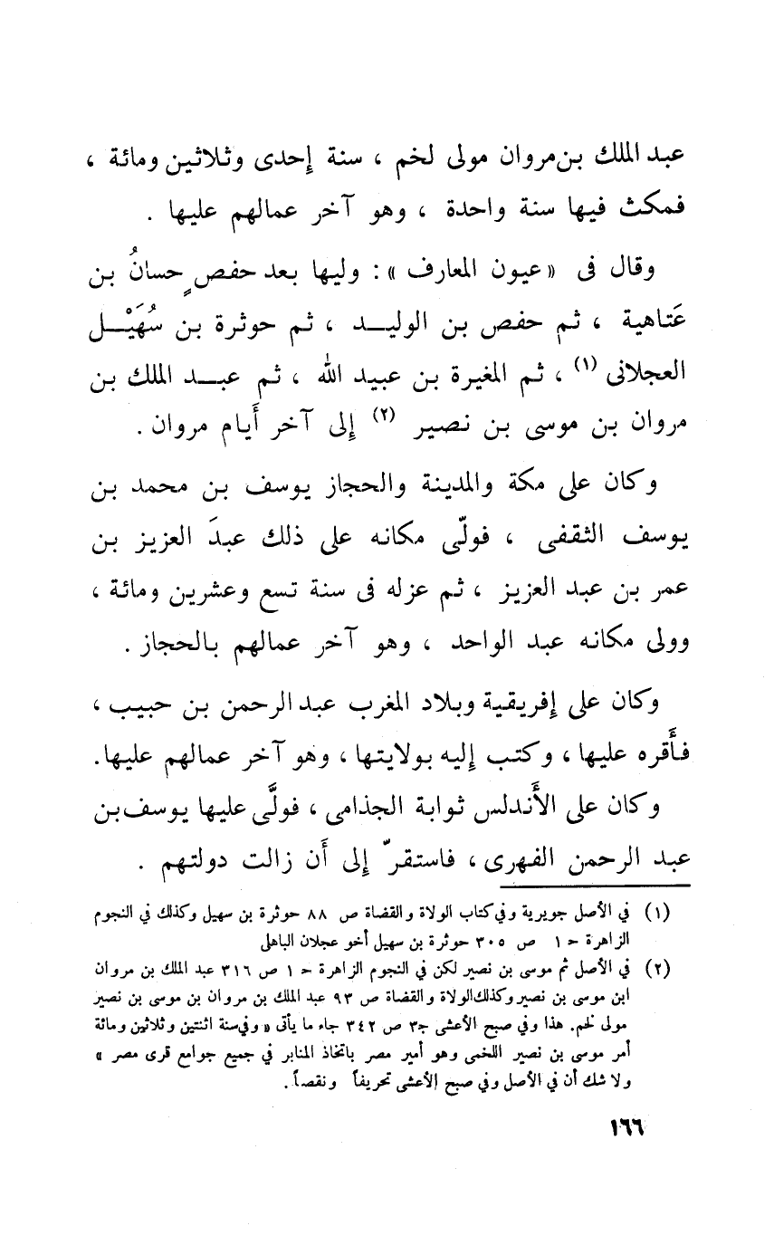 وَقَالَ فِي عُيُون المعارف وَليهَا بعد حَفْص حسان بن عتاهية ثمَّ حَفْص بن الْوَلِيد ثمَّ حوثرة بن سُهَيْل الْعجْلَاني ثمَّ المغير بن عبيد الله ثمَّ عبد الْملك بن مَرْوَان بن مُوسَى بن نصير الى آخر أَيَّام مَرْوَان