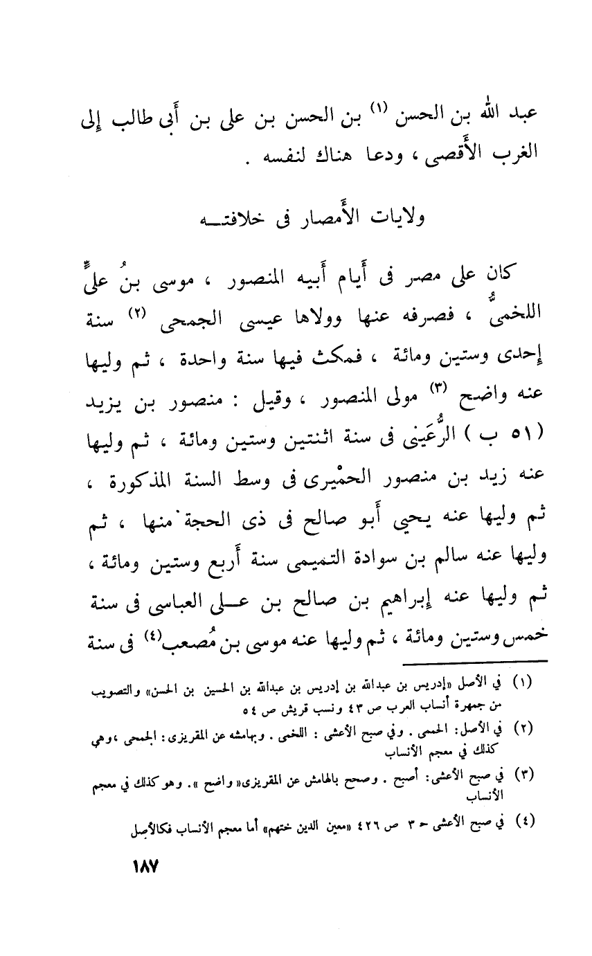 عبد الله بن الْحسن بن الْحسن بن عَليّ بن أبي طَالب إِلَى الغرب الْأَقْصَى ودعا هُنَاكَ لنَفسِهِ