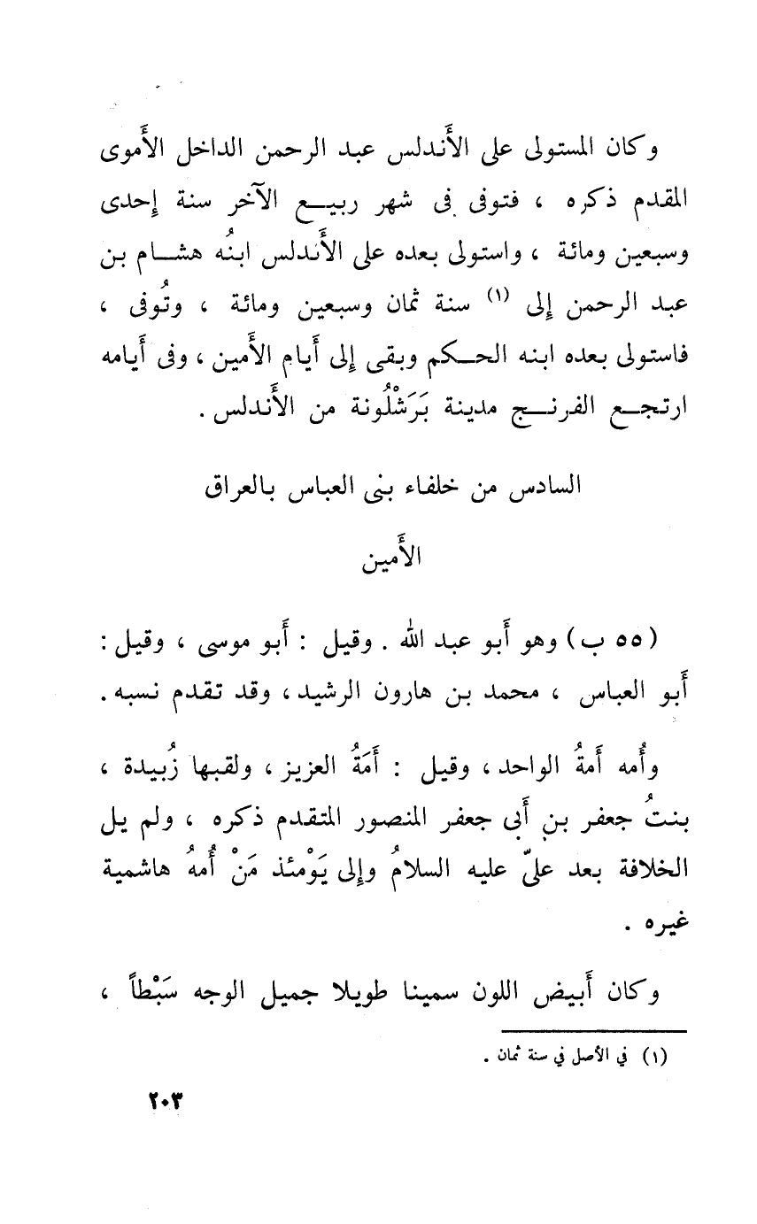 55 - ب وَهُوَ ابو عبد الله وَقيل ابو مُوسَى وَقيل ابو الْعَبَّاس مُحَمَّد بن هَارُون الرشيد وَقد تقدم نسبه