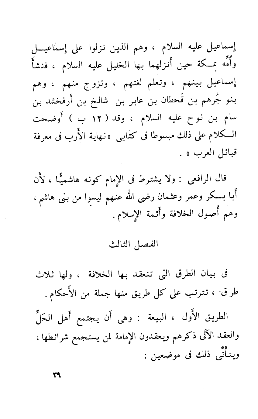 فِي بَيَان الطّرق الَّتِي تَنْعَقِد بهَا الْخلَافَة وَلها ثَلَاث طرق تترتب على كل طَرِيق مِنْهَا جملَة من الْأَحْكَام