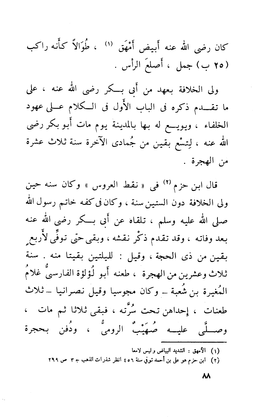كَانَ رَضِي الله عَنهُ أَبيض أمهق طوَالًا كَأَنَّهُ رَاكب (25 ب) جمل أصلع الرَّأْس
