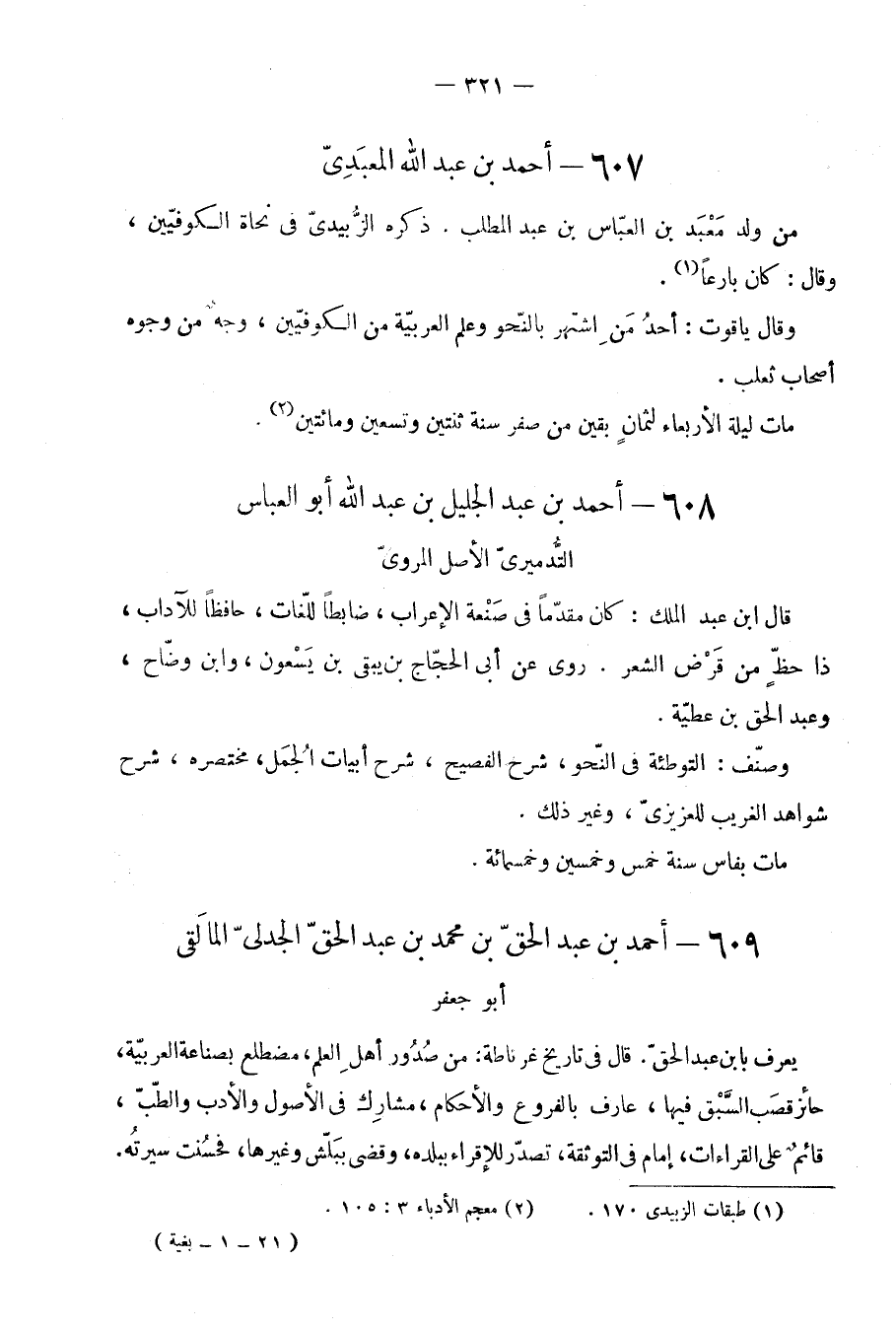 وَقَالَ ياقوت: أحد من اشْتهر بالنحو وَعلم الْعَرَبيَّة من الْكُوفِيّين، وَجه من وُجُوه أَصْحَاب ثَعْلَب.