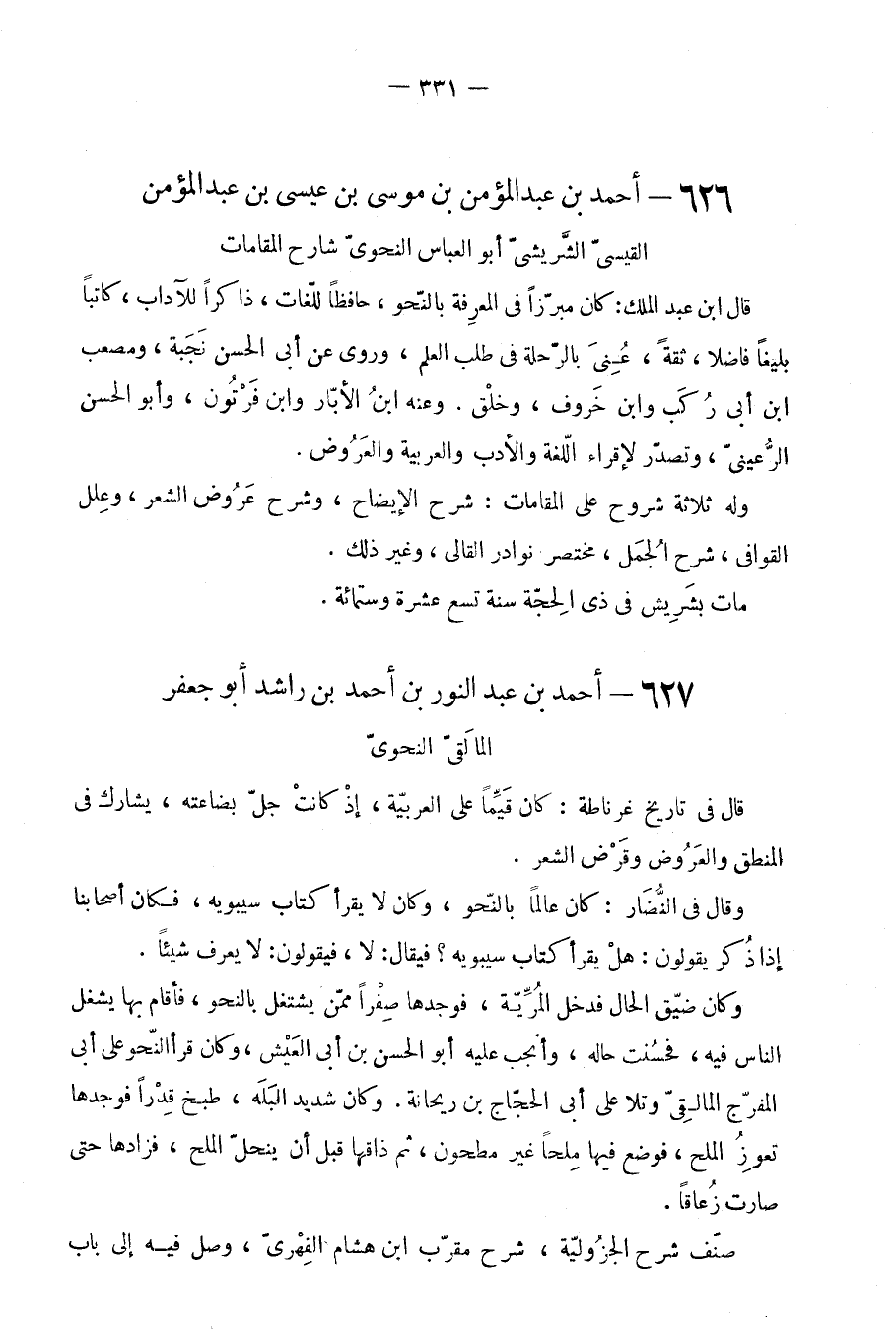 626 - أَحْمد بن عبد الْمُؤمن بن مُوسَى بن عِيسَى بن عبد الْمُؤمن الْقَيْسِي الشريشي أَبُو الْعَبَّاس النَّحْوِيّ شَارِح المقامات