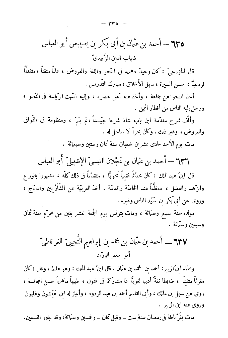 635 - أَحْمد بن عُثْمَان بن أبي بكر بن بصيبص أَبُو الْعَبَّاس شهَاب الدّين الزبيدِيّ
