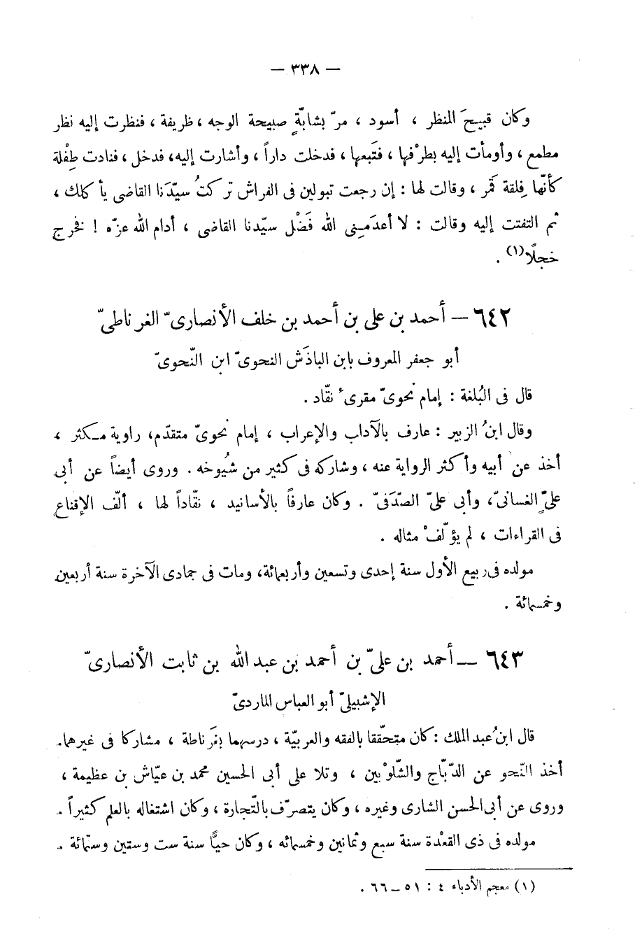 642 - أَحْمد بن عَليّ بن أَحْمد بن خلف الْأنْصَارِيّ الغرناطي أَبُو جَعْفَر الْمَعْرُوف بِابْن الباذش النَّحْوِيّ ابْن النَّحْوِيّ