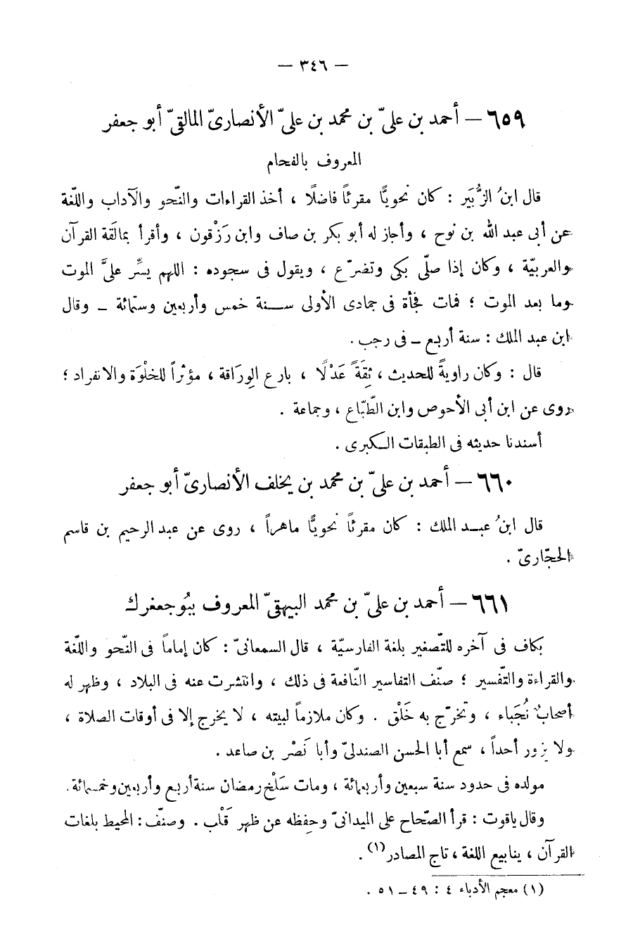 659 - أَحْمد بن عَليّ بن مُحَمَّد بن عَليّ الْأنْصَارِيّ المالقي أَبُو جَعْفَر الْمَعْرُوف بالفحام