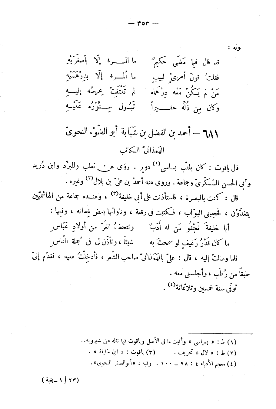 681 - أَحْمد بن الْفضل بن شَبابَة أَبُو الضَّوْء النَّحْوِيّ الهمذاني الْكَاتِب