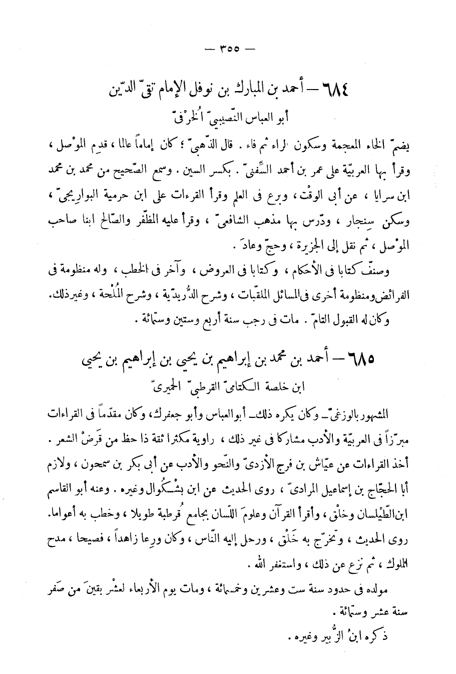 684 - أَحْمد بن الْمُبَارك بن نَوْفَل الإِمَام تَقِيّ الدّين أَبُو الْعَبَّاس النصيبي الخرفي