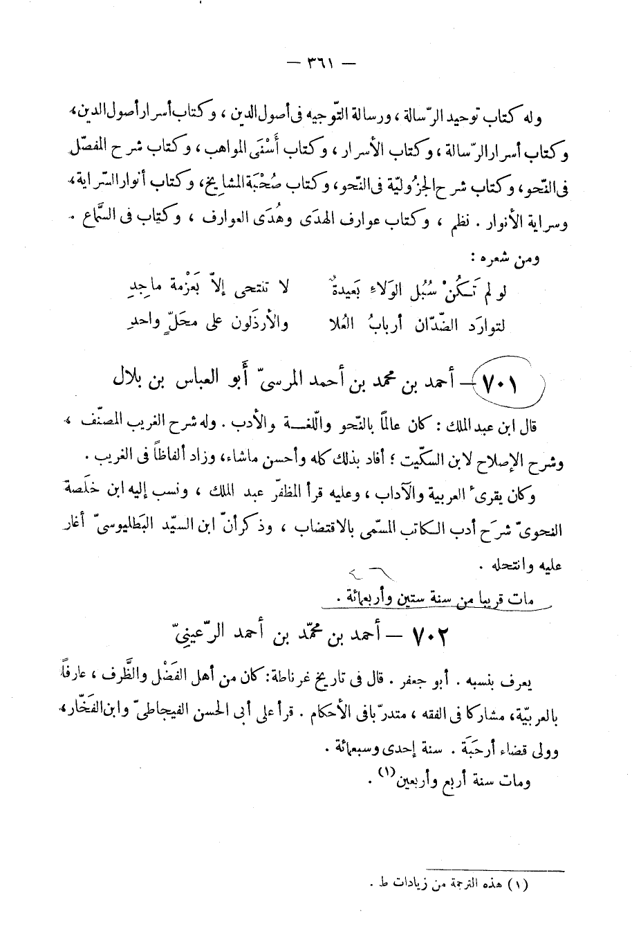 701 - أَحْمد بن مُحَمَّد بن أَحْمد المرسي أَبُو الْعَبَّاس بن بِلَال