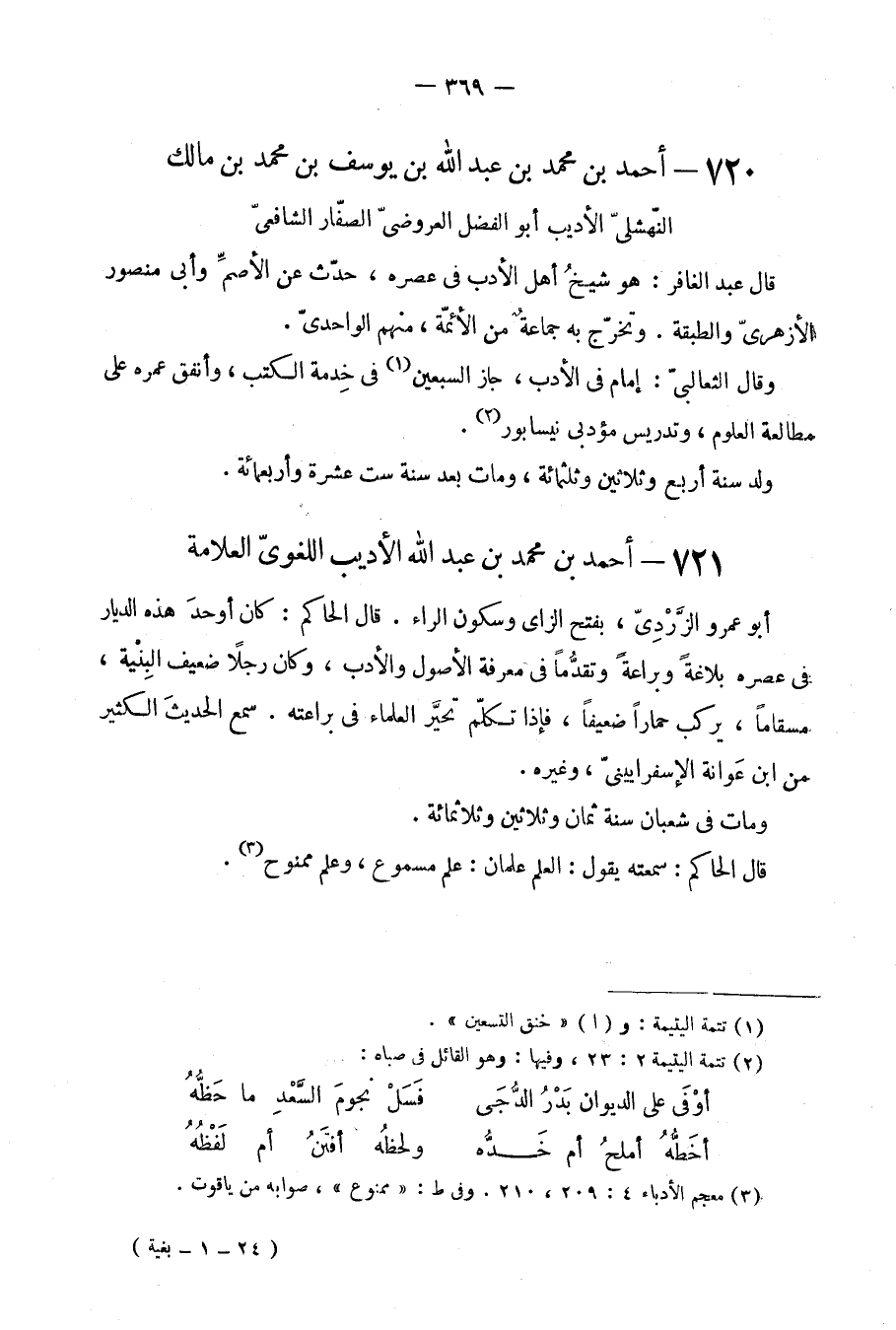 720 - أَحْمد بن مُحَمَّد بن عبد الله بن يُوسُف بن مُحَمَّد بن مَالك النَّهْشَلِي الأديب أَبُو الْفضل الْعَرُوضِي الصفار الشَّافِعِي