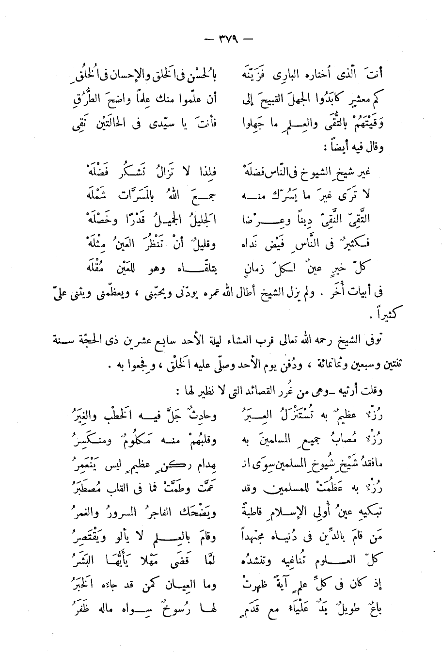 (مَا فقد شيخ شُيُوخ الْمُسلمين سوى ان ... هدام ركن عَظِيم لَيْسَ ينعمر)