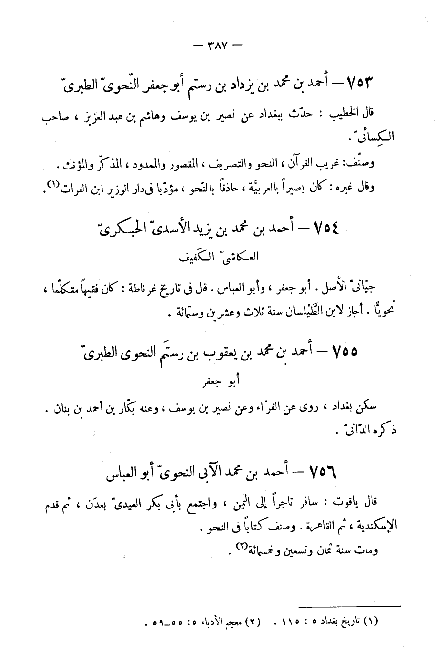 753 - أَحْمد بن مُحَمَّد بن يزْدَاد بن رستم أَبُو جَعْفَر النَّحْوِيّ الطَّبَرِيّ
