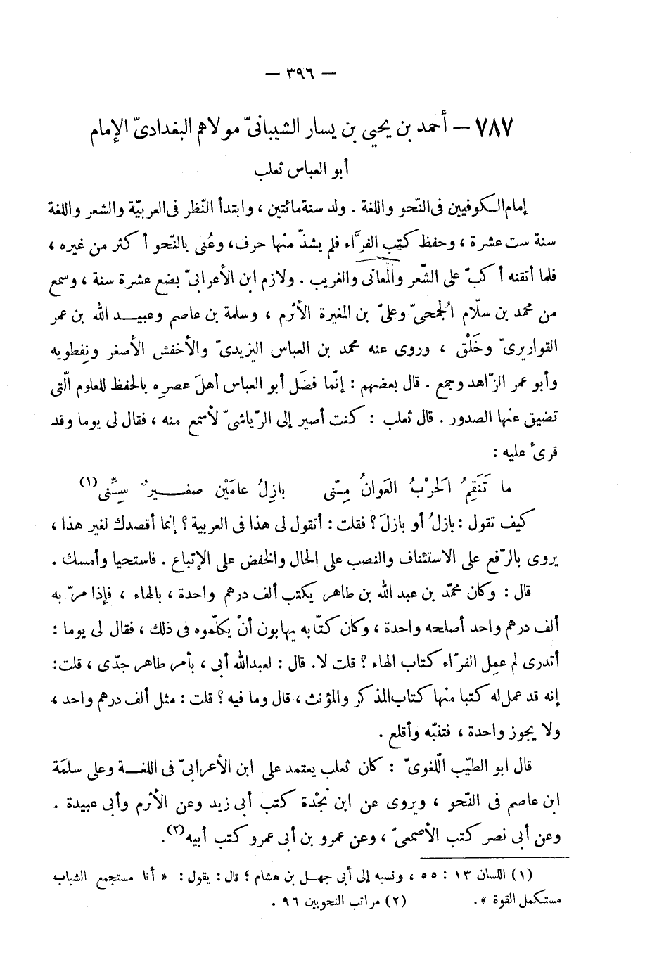 787 - أَحْمد بن يحيى بن يسَار الشَّيْبَانِيّ مَوْلَاهُم الْبَغْدَادِيّ الإِمَام أَبُو الْعَبَّاس ثَعْلَب