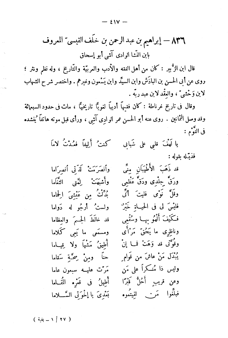 836 - إِبْرَاهِيم بن عبد الرَّحْمَن بن خلف الْقَيْسِي الْمَعْرُوف بِابْن النشا الْوَادي آشي أَبُو إِسْحَاق