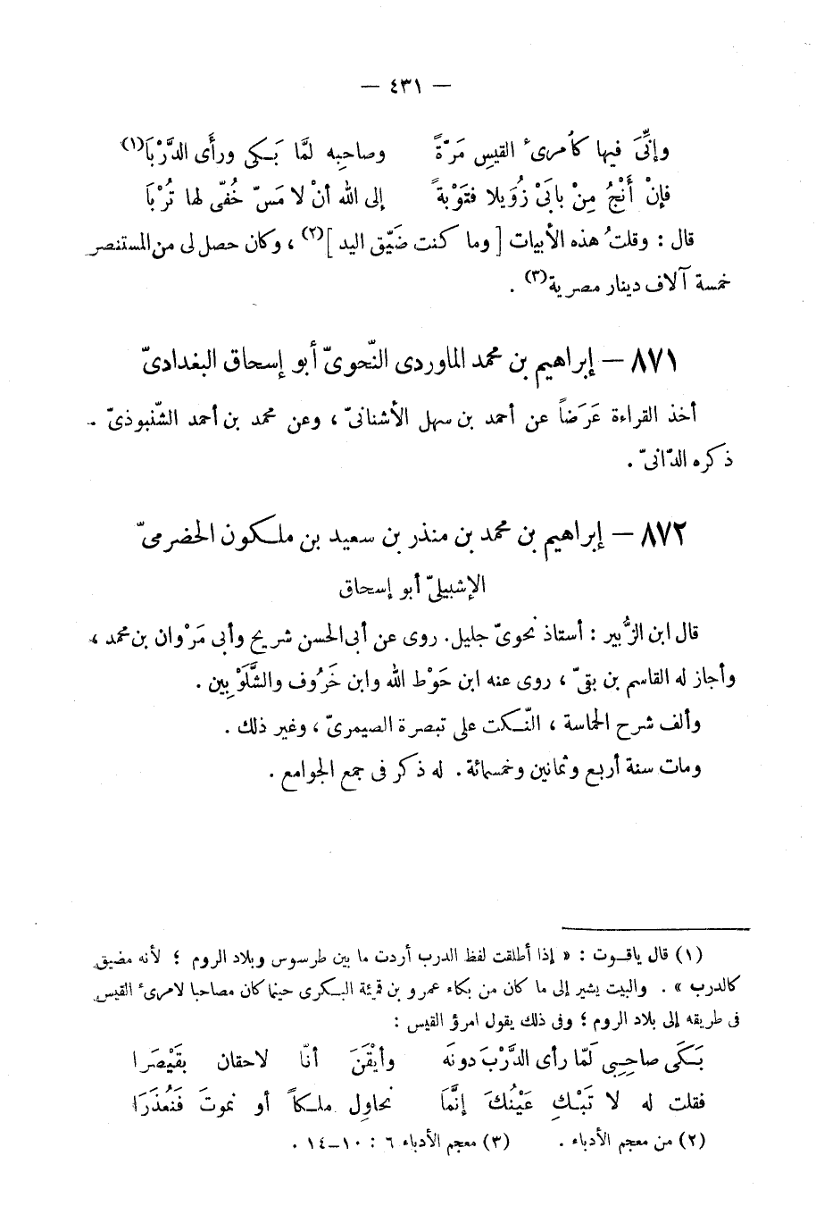 871 - إِبْرَاهِيم بن مُحَمَّد الْمَاوَرْدِيّ النَّحْوِيّ أَبُو إِسْحَاق الْبَغْدَادِيّ