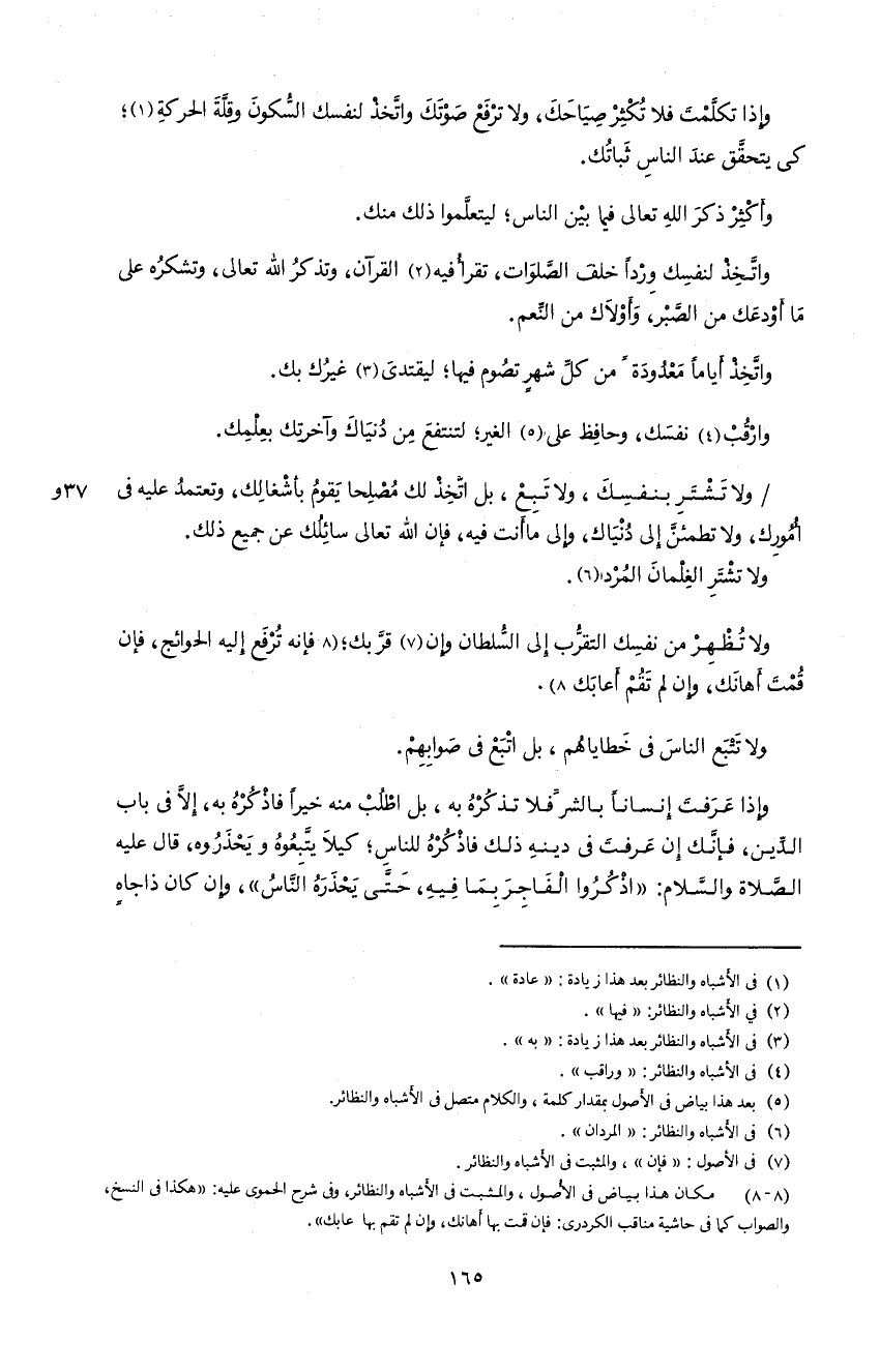 5) بعد هذا بياض فى الأصول بمقدار كلمة، و الكلام متصل فى الأشباه و النظائر.