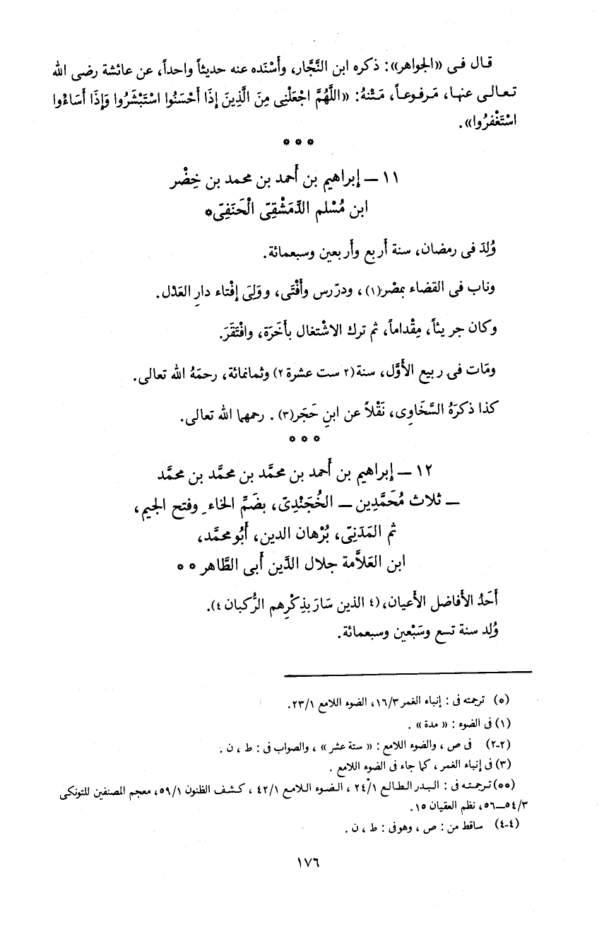 12 - إبراهيم بن أحمد بن محمّد بن محمّد بن محمّد -ثلاث محمّدين-الخجندىّ، بضمّ الخاء و فتح الجيم، ثم المدنىّ، برهان الدين، أبو محمّد، ابن العلاّمة جلال الدّين أبى الطّاهر **