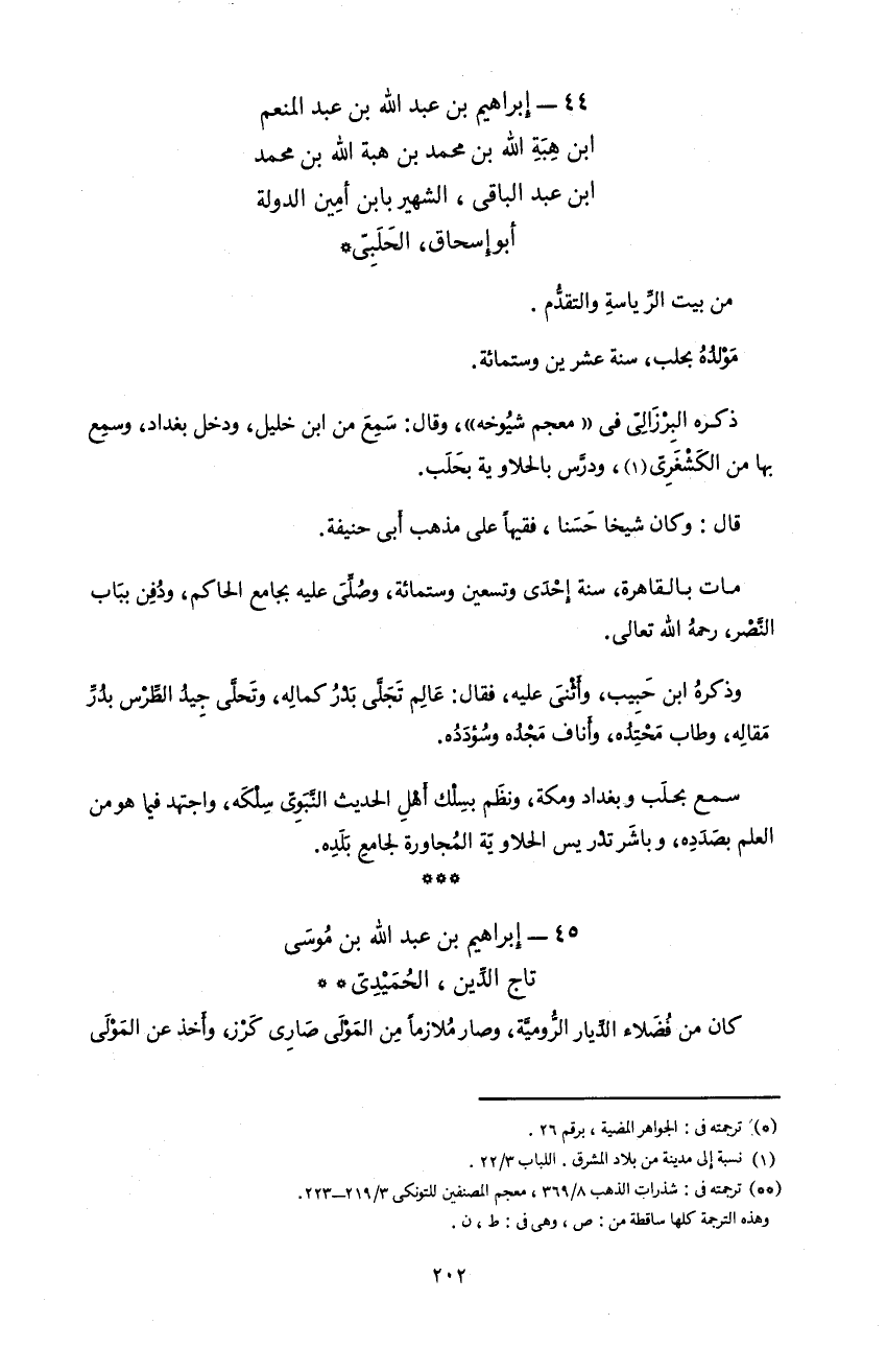 44 - إبراهيم بن عبد اللّه بن عبد المنعم ابن هبة اللّه بن محمد بن هبة اللّه بن محمد ابن عبد الباقى، الشهير بابن أمين الدولة أبو إسحاق، الحلبىّ *