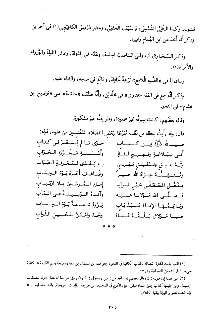 205 فنون، و كذا التّقىّ الشّمسىّ، و السّيف الحنفىّ، و حضر دروس الكافيجى 1 فى آخرين و ذكر أنه أخذ عن ابن الهمام و غيره.