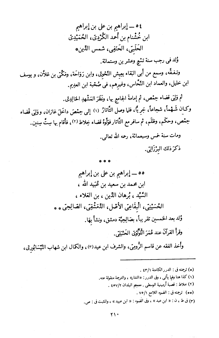 54 - إبراهيم بن على بن إبراهيم ابن خشنام بن أحمد الكردىّ، الحميدىّ الحلبىّ، الحنفى، شمس الدّين *