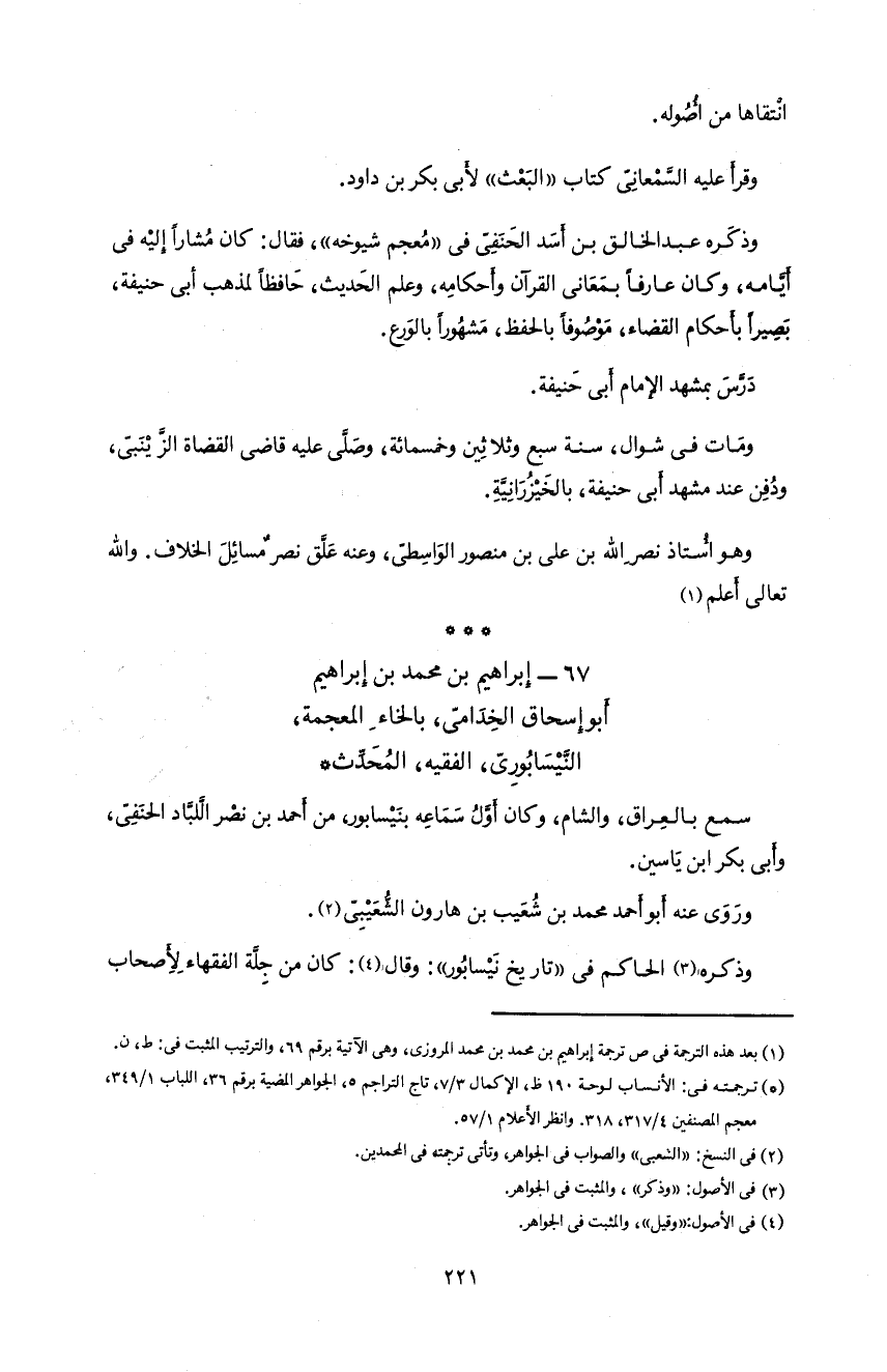 67 - إبراهيم بن محمد بن إبراهيم أبو إسحاق الخدامىّ، بالخاء المعجمة، النّيسابورىّ، الفقيه، المحدّث *