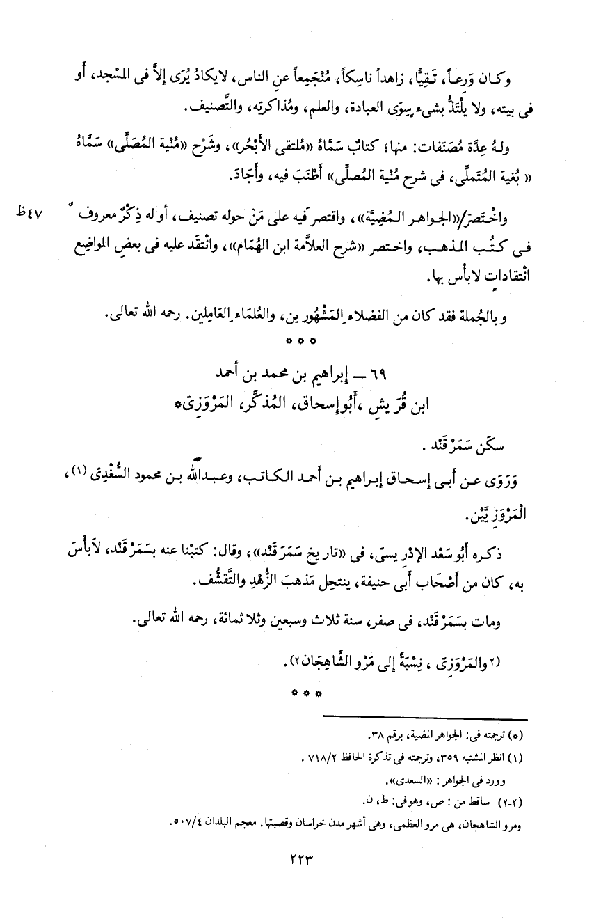 69 - إبراهيم بن محمد بن أحمد ابن قريش، أبو إسحاق، المذكّر، المروزىّ *