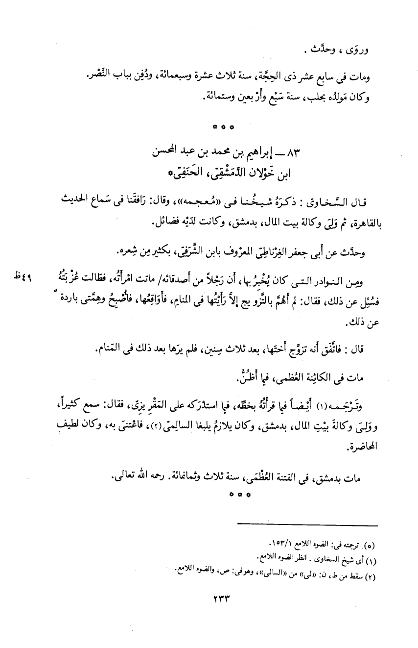 83 - إبراهيم بن محمد بن عبد المحسن ابن خولان الدّمشقىّ، الحنفىّ *