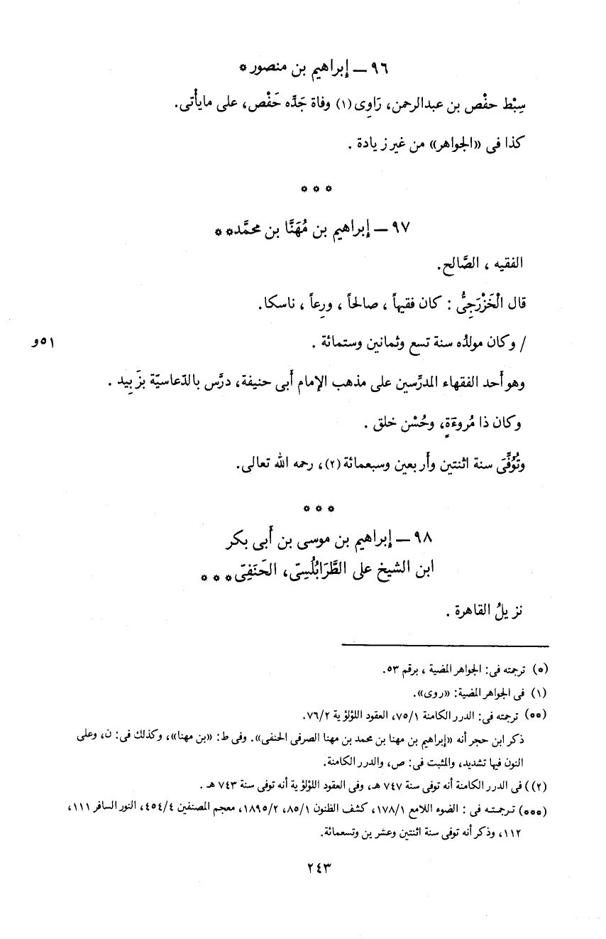 98 - إبراهيم بن موسى بن أبى بكر ابن الشيخ على الطّرابلسىّ، الحنفىّ ***