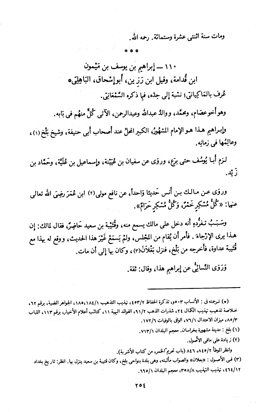110 - إبراهيم بن يوسف بن ميمون ابن قدامة، و قيل ابن رزين، أبو إسحاق، الباهلىّ *