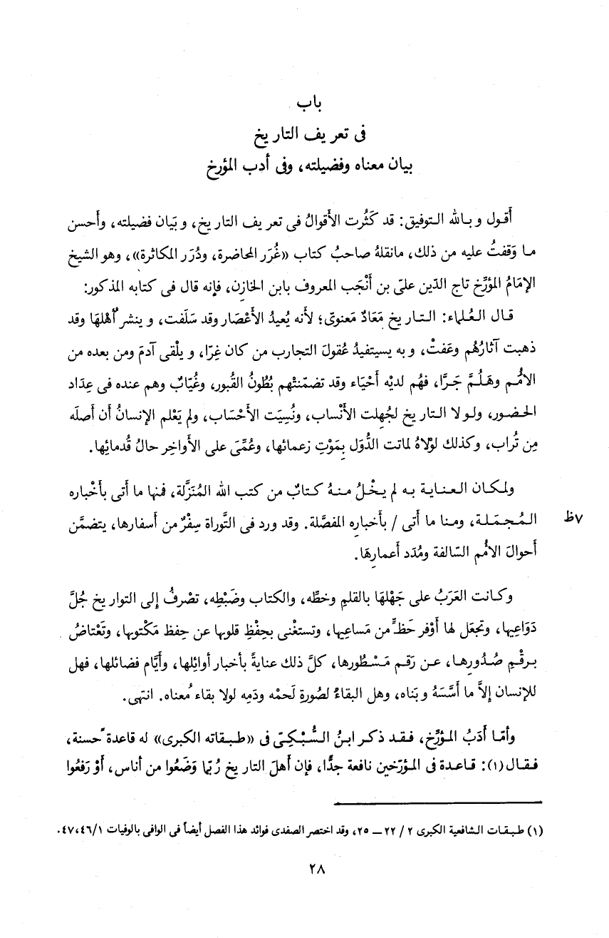 باب فى تعريف التاريخ بيان معناه و فضيلته، و فى أدب المؤرخ