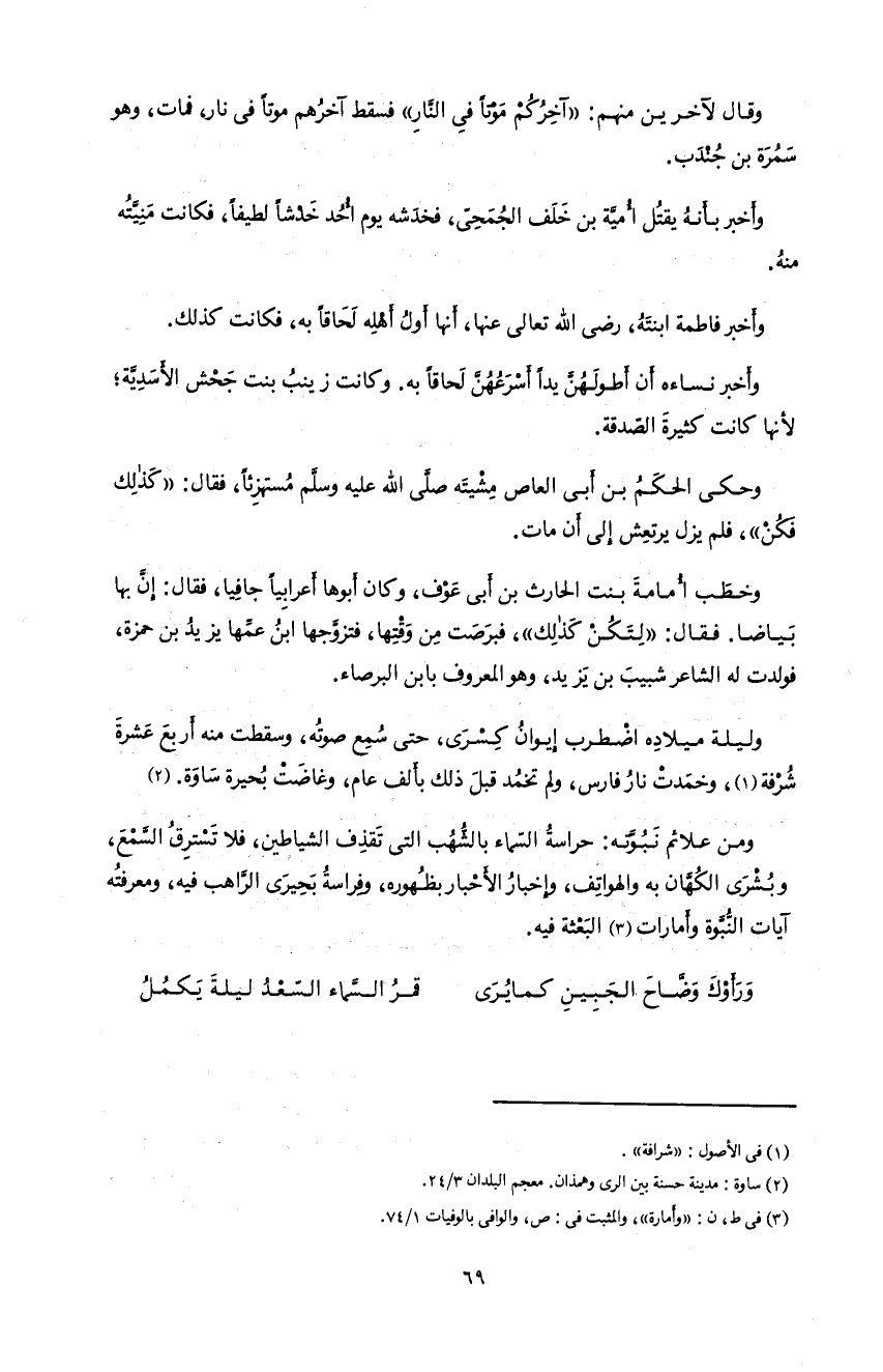 69 و قال لآخرين منهم: «آخركم موتا فى النّار» فسقط آخرهم موتا فى نار، فمات، و هو سمرة بن جندب.