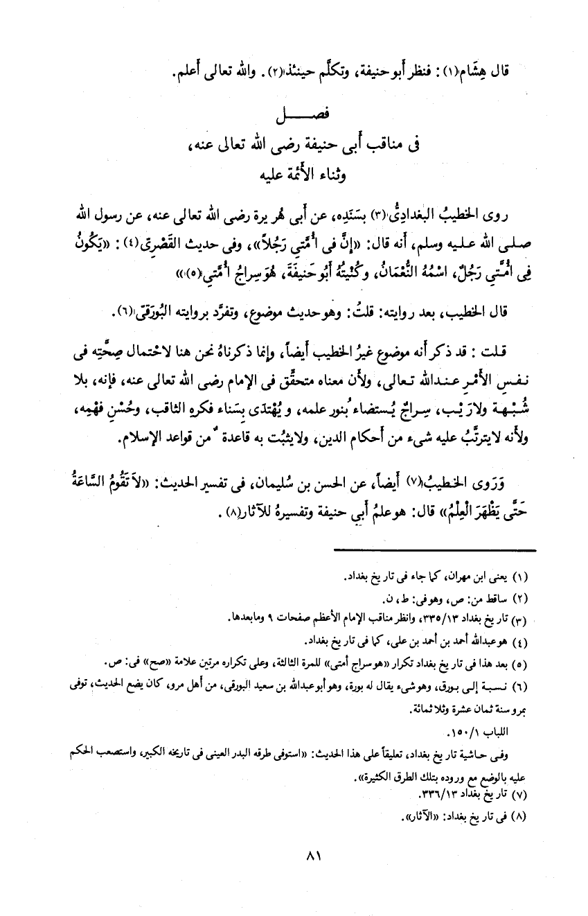 3) تاريخ بغداد 13/ 335، و انظر مناقب الإمام الأعظم صفحات 9 و ما بعدها.
