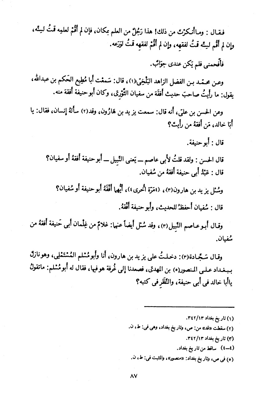 و قال أبو عاصم النّبيل 3، و قد سئل أيضا عنهما: غلام من غلمان أبى حنيفة أفقه من سفيان.