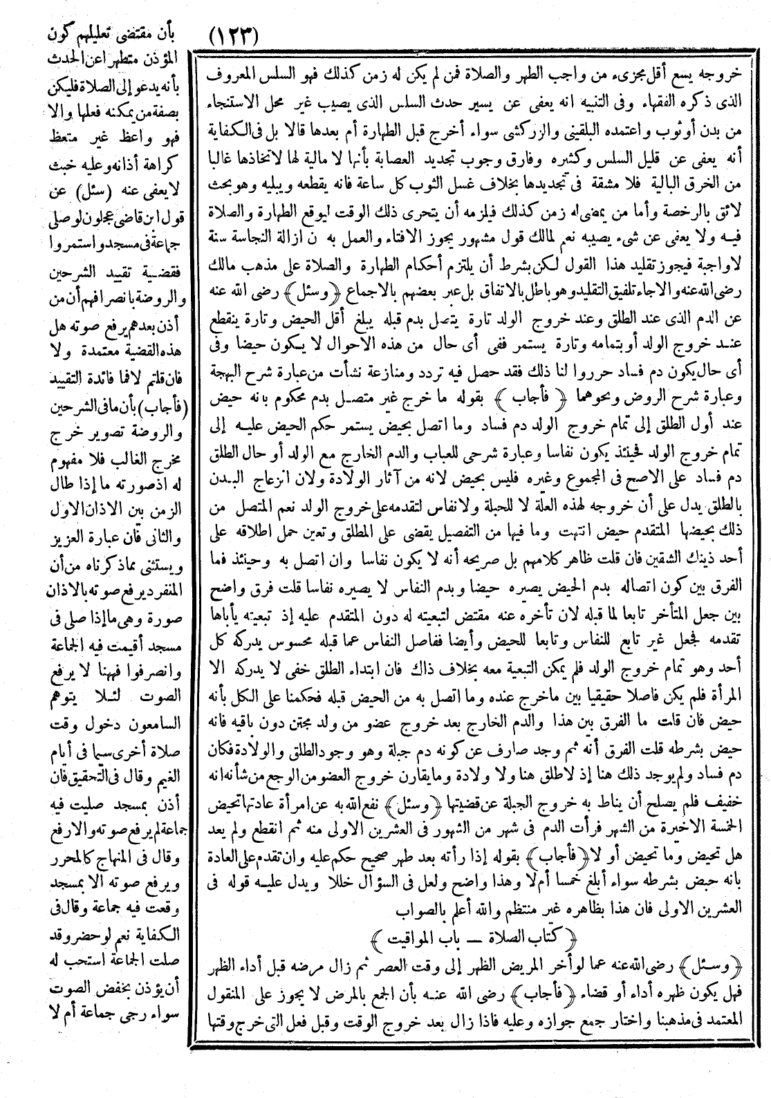 خُرُوجِهِ يَسَعُ أَقَلَّ مُجْزِئٍ مِنْ وَاجِبِ الطُّهْرِ وَالصَّلَاةِ فَمَنْ لَمْ يَكُنْ لَهُ زَمَنٌ كَذَلِكَ فَهُوَ السَّلَسُ الْمَعْرُوفُ الَّذِي ذَكَرَهُ الْفُقَهَاءُ وَفِي التَّنْبِيهِ أَنَّهُ يُعْفَى عَنْ يَسِيرِ حَدَثِ السَّلَسِ الَّذِي يُصِيبُ غَيْرَ مَحَلِّ الِاسْتِنْجَاءِ مِنْ بَدَنٍ، أَوْ ثَوْبٍ وَاعْتَمَدَهُ الْبُلْقِينِيُّ وَالزَّرْكَشِيُّ سَوَاءٌ أَخَرَجَ قَبْلَ الطَّهَارَةِ أَمْ بَعْدَهَا قَالَا بَلْ فِي الْكِفَايَةِ أَنَّهُ يُعْفَى عَنْ قَلِيلِ السَّلَسِ وَكَثِيرِهِ وَفَارَقَ وُجُوبَ تَجْدِيدِ الْعِصَابَةِ بِأَنَّهَا لَا مَالِيَّةَ لَهَا لِاِتِّخَاذِهَا غَالِبًا مِنْ الْخِرَقِ الْبَالِيَةِ فَلَا مَشَقَّةَ فِي تَجْدِيدِهَا بِخِلَافِ غَسْلِ الثَّوْبِ كُلَّ سَاعَةٍ فَإِنَّهُ يَقْطَعُهُ وَيُبْلِيه وَهُوَ بَحْثٌ لَائِقٌ بِالرُّخْصَةِ.
