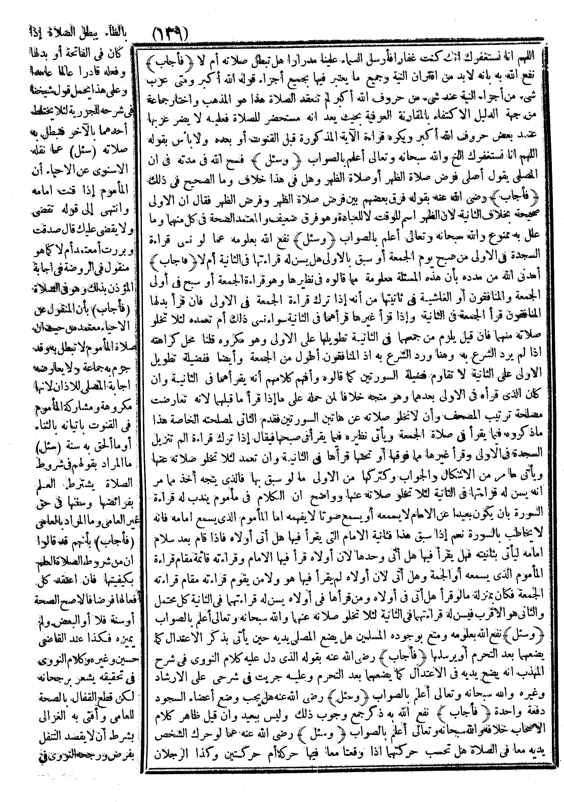 (فَأَجَابَ) - نَفَعَ اللَّهُ بِهِ - ذَكَرَ جَمْعٌ وُجُوبَ ذَلِكَ وَلَيْسَ بِبَعِيدٍ، وَإِنْ قِيلَ ظَاهِرُ كَلَامِ الْأَصْحَابِ خِلَافُهُ، وَاَللَّهُ سُبْحَانَهُ وَتَعَالَى أَعْلَمُ بِالصَّوَابِ.