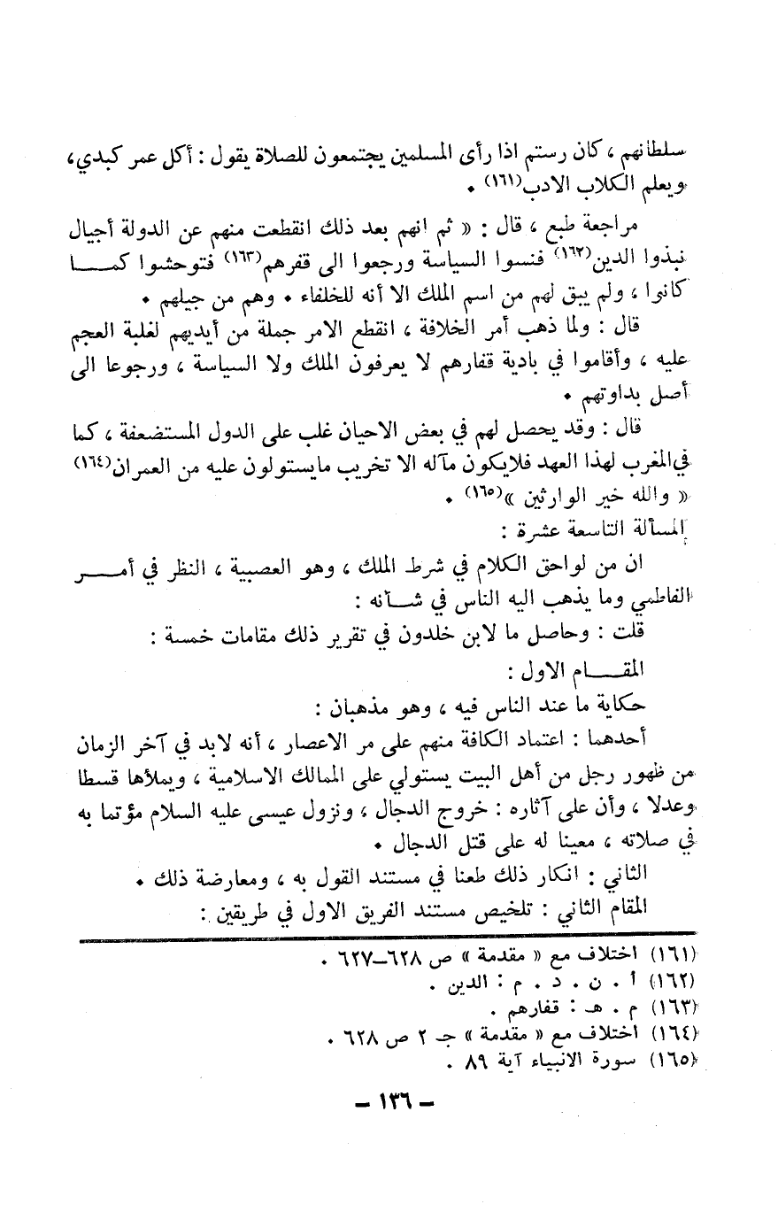 أَحدهمَا اعْتِمَاد الكافة مِنْهُم على مر الاعصار انه لابد فِي آخر الزَّمَان من ظُهُور رجل م أهل الْبَيْت يستولي على الممالك الإسلامية ويملها قسطا وعدلا وَأَن على آثاره خُرُوج الدَّجَّال ونزول عِيسَى عَلَيْهِ السَّلَام مؤتما فِي صلَاته معينا لَهُ على قتل الدَّجَّال