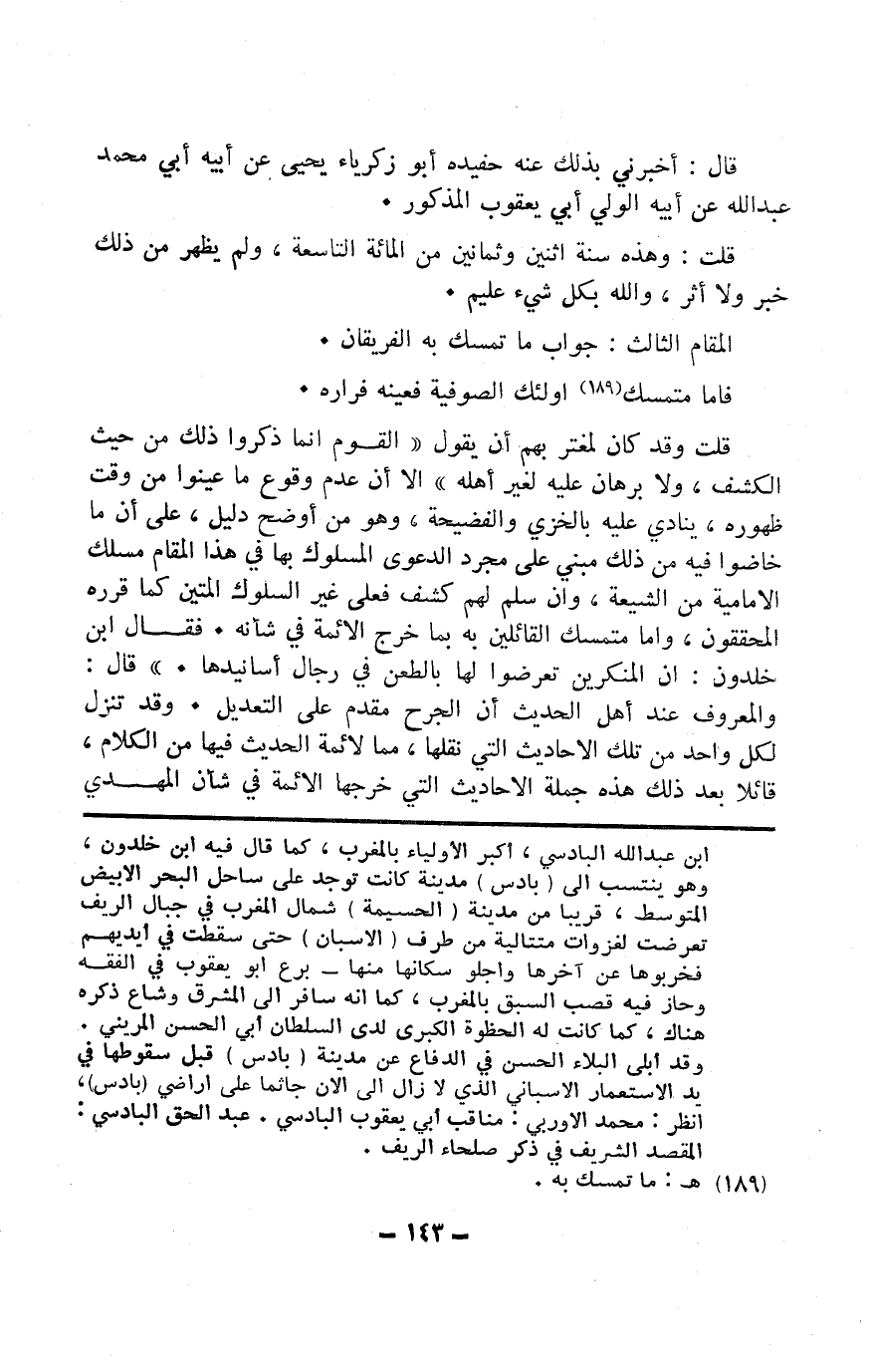 قَالَ اخبرني بذلك عَنهُ حفيده أَبُو زَكَرِيَّا يحيى عَن أَبِيه أبي مُحَمَّد عبد الله عَن أَبِيه الْوَلِيّ أبي يَعْقُوب الْمَذْكُور