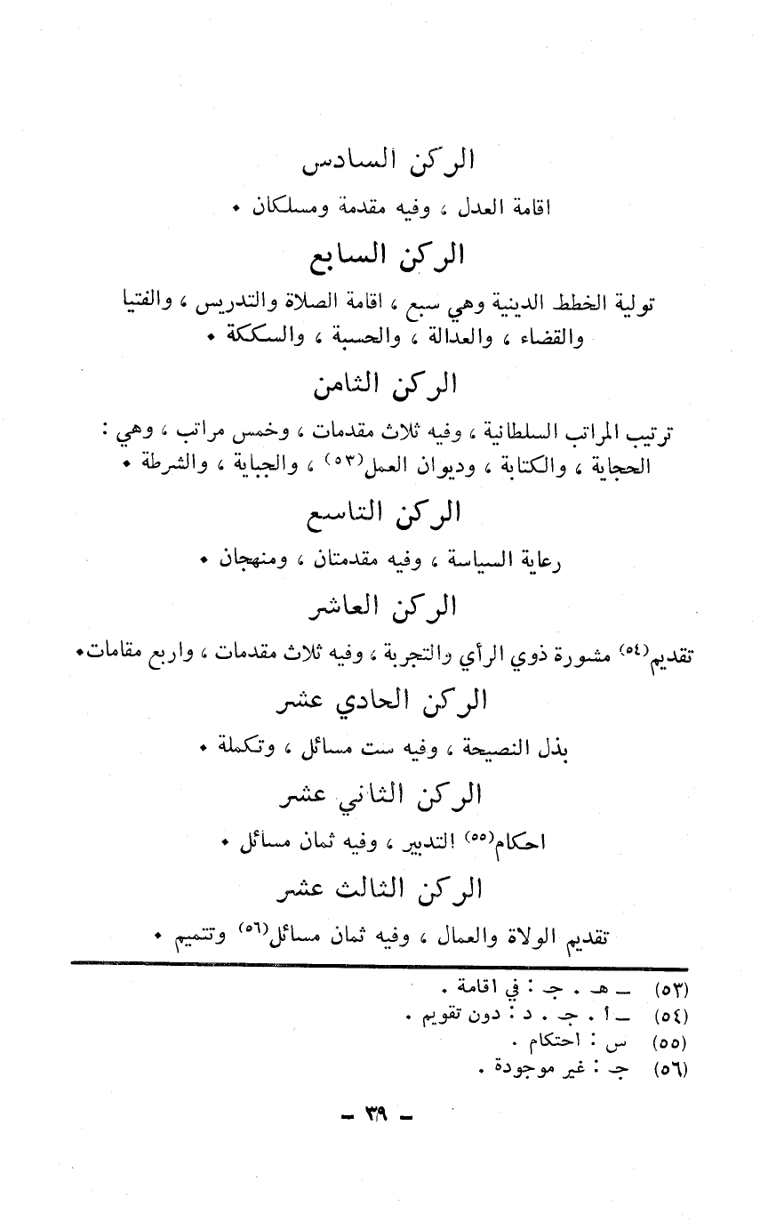 تَرْتِيب الْمَرَاتِب السُّلْطَانِيَّة وَفِيه ثَلَاث مُقَدمَات وَخمْس مَرَاتِب وَهِي الحجابة وَالْكِتَابَة وديوان الْعَمَل والجباية والشرطة