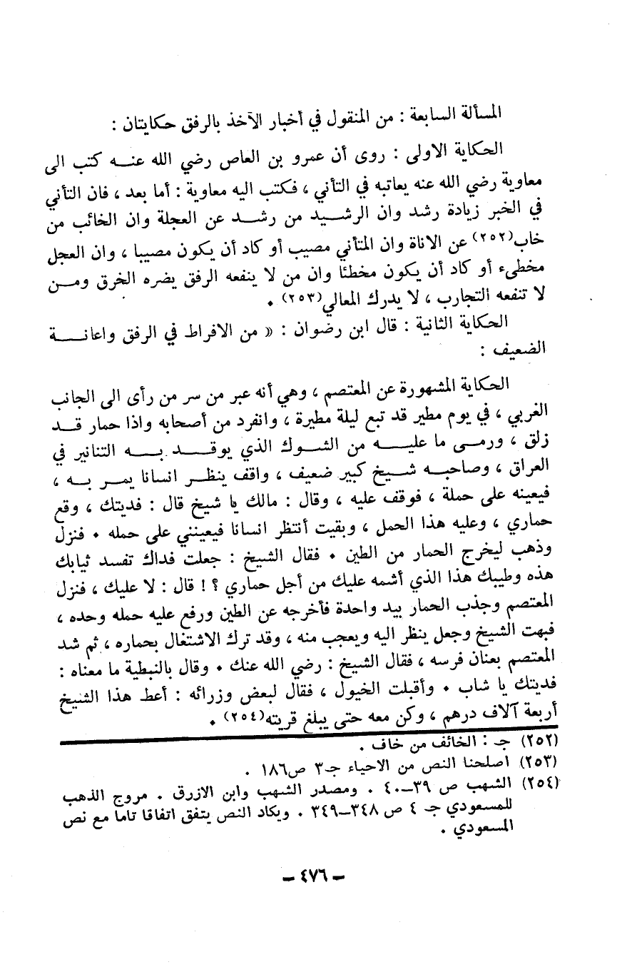 الْمَسْأَلَة السَّابِعَة من الْمَنْقُول فِي أَخْبَار الْأَخْذ فِي الرِّفْق حكايتان