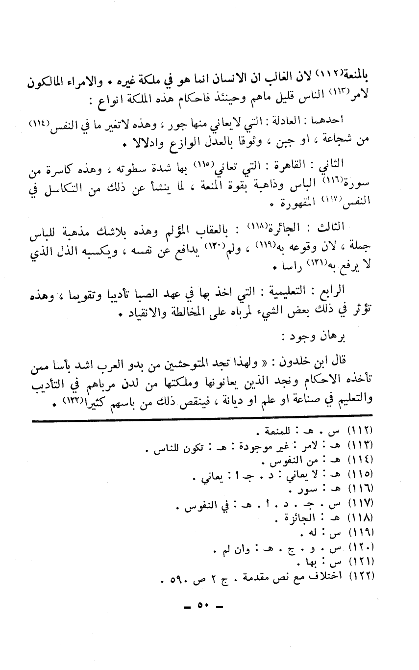 قَالَ ابْن خلدون وَلِهَذَا تَجِد المتوحشين من بَدو الْعَرَب أَشد بَأْسا مِمَّن تَأْخُذهُ الْأَحْكَام ونجد الَّذين يعانونها وملكتها من لدن مرباهم فِي التَّأْدِيب والتعليم فِي صناعَة أَو علم أَو ديانَة فينقص ذَلِك من بأسهم كثيرا