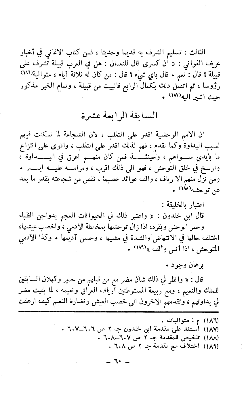 إِن المم الوحشية أقدر على التغلب لِأَن الشجَاعَة لما تمكنت فيهم لسَبَب البداوة وكما تقدم فهم لذَلِك أقدر على التغلب وَأقوى على انتزاع مَا بأيدي سواهُم وَحِينَئِذٍ فَمن كَانَ مِنْهُم اعرق فِي البداوة وأرسخ فِي خلق التوحش فَهُوَ غلى ذَلِك أقرب ومرامه علية أيسر زمن نزل مِنْهُم الرياف وَألف عوائد خصبها نقص من شجاعته بِقدر مَا بعد عَن توحشه