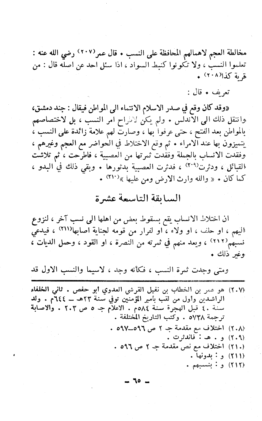 مُخَالطَة الْعَجم لإهمالهم الْمُحَافظَة على النّسَب قَالَ عمر رَضِي الله عَنهُ تعلمُوا النّسَب وَلَا تَكُونُوا كنبط السوَاد إِذا سُئِلَ أحد عَن أَصله قَالَ من قَرْيَة كَذَا