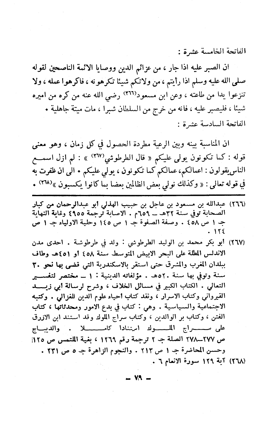 إِن الصَّبْر عَلَيْهِ إِذا جَار من عزائم الدّين ووصايا الْأَئِمَّة الناصحين لقَوْله صلى الله عَلَيْهِ وَسلم إِذا رَأَيْتُمْ من ولاتكم شَيْئا تكرهونه فاكرهوا عمله وَلَا تنزعوا يدا من طَاعَته وَعَن ابْن مَسْعُود رَضِي الله عَنهُ من كره من أميره شَيْئا فليصبر عَلَيْهِ فَإِنَّهُ من خرج من السُّلْطَان شبْرًا مَاتَ ميتَة جَاهِلِيَّة