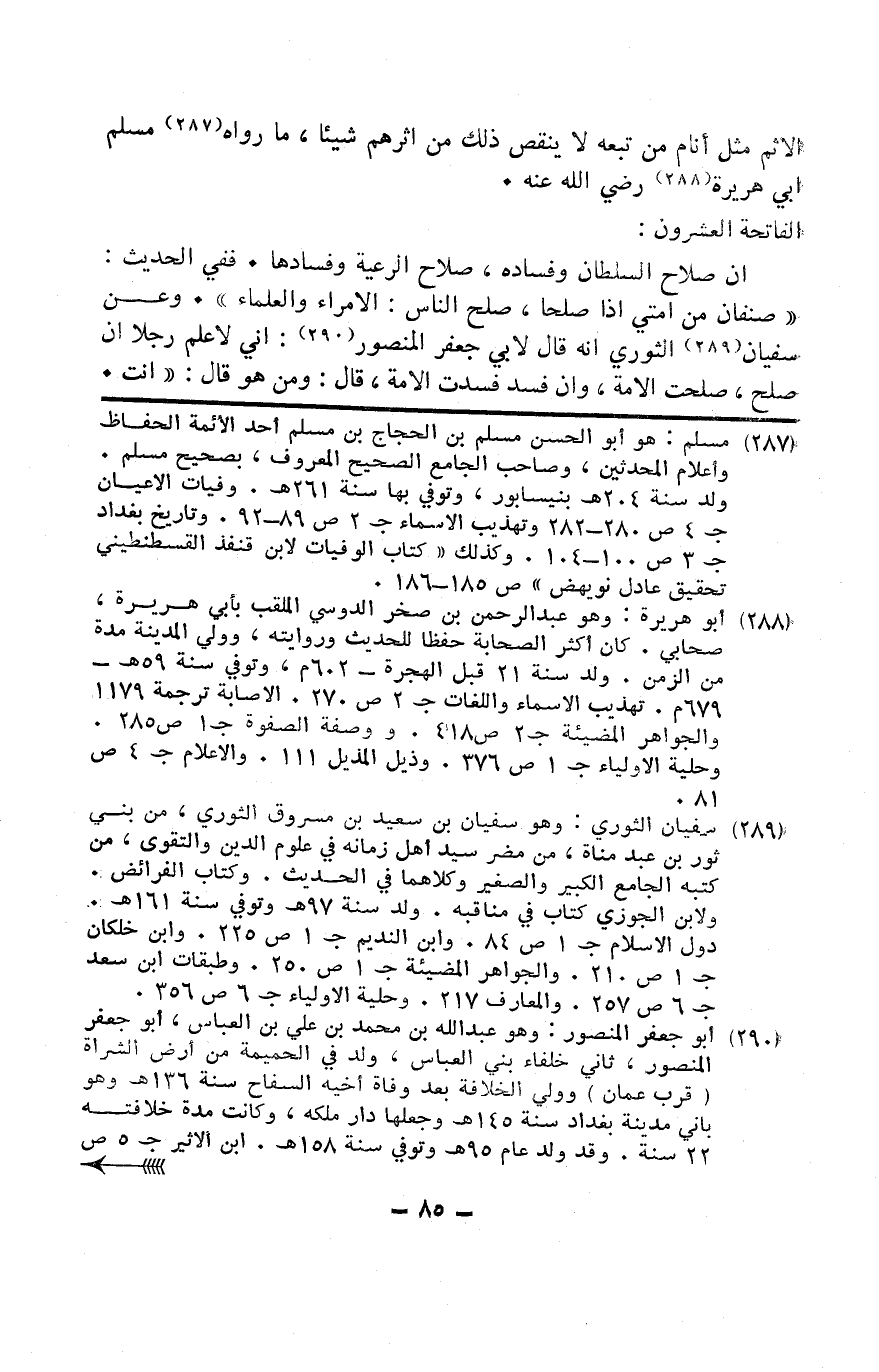 إِن صَلَاح السُّلْطَان وفساده صَلَاح الرّعية وفسادها فَفِي الحَدِيث صنفان من أمتِي إِذا صلحا صلح النَّاس الْأُمَرَاء وَالْعُلَمَاء وَعَن سُفْيَان الثَّوْريّ أَنه قَالَ لأبي جَعْفَر الْمَنْصُور إِنِّي لأعْلم رجلا إِن صلح صلحت الْأمة وَإِن فسد فَسدتْ الْأمة قَالَ وَمن هُوَ قَالَ أَنْت