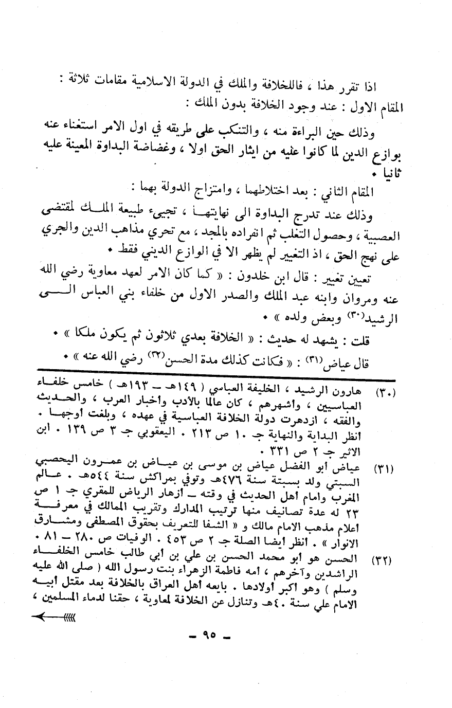 إِذا تقرر هَذَا فالخلافة وَالْملك فِي الدولة الإسلامية مقامات ثَلَاثَة الْمقَام الأول عِنْد وجود الْخلَافَة بِدُونِ الْملك