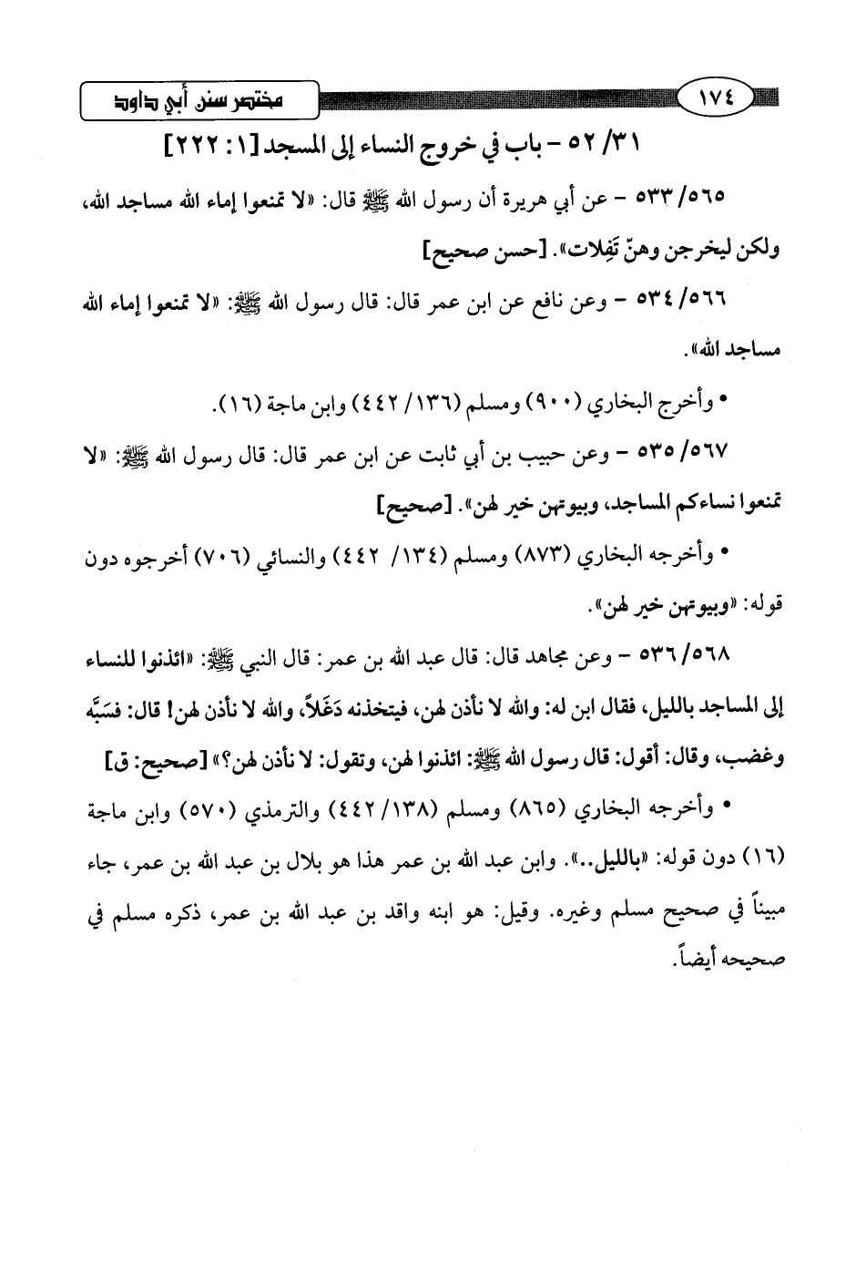 31/ 52 - باب في خروج النساء إلى المسجد [1: 222]