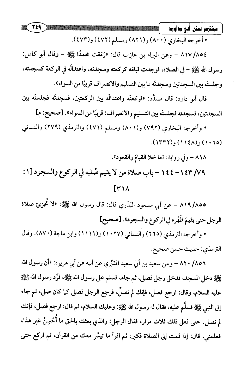 79/ 143 - 144 - باب صلاة من لا يقيم صُلبه في الركوع والسجود [1: 318]